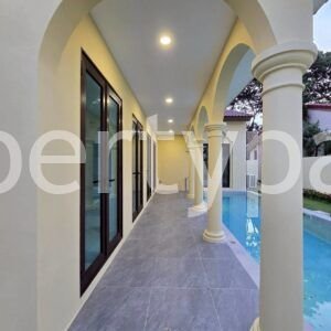 3 bedrooms, 4 bathrooms, swimming pool, Western kitchen, Thai kitchen, new house, fully furnished, on Sukhumvit Road, next to Nong Nooch Garden,